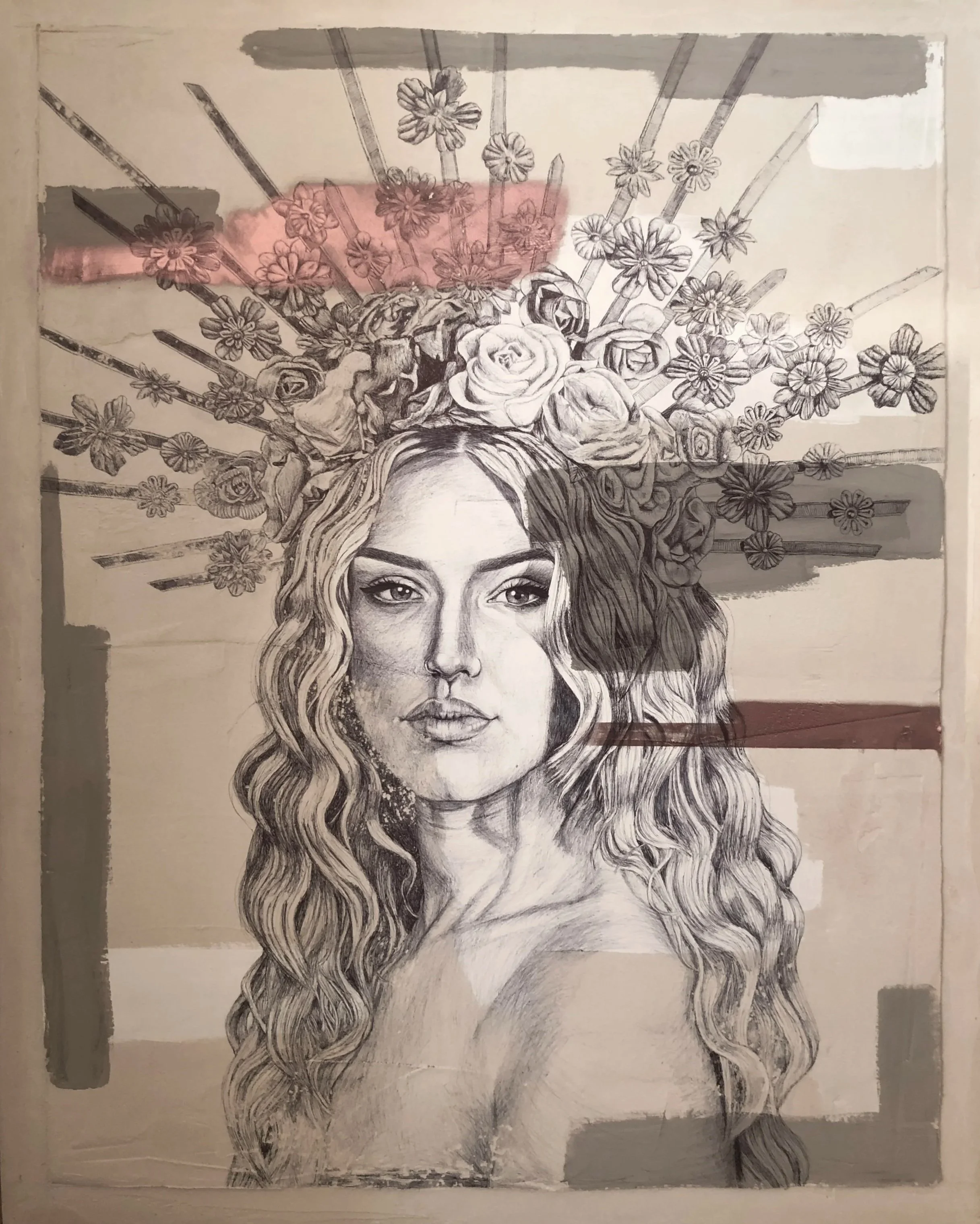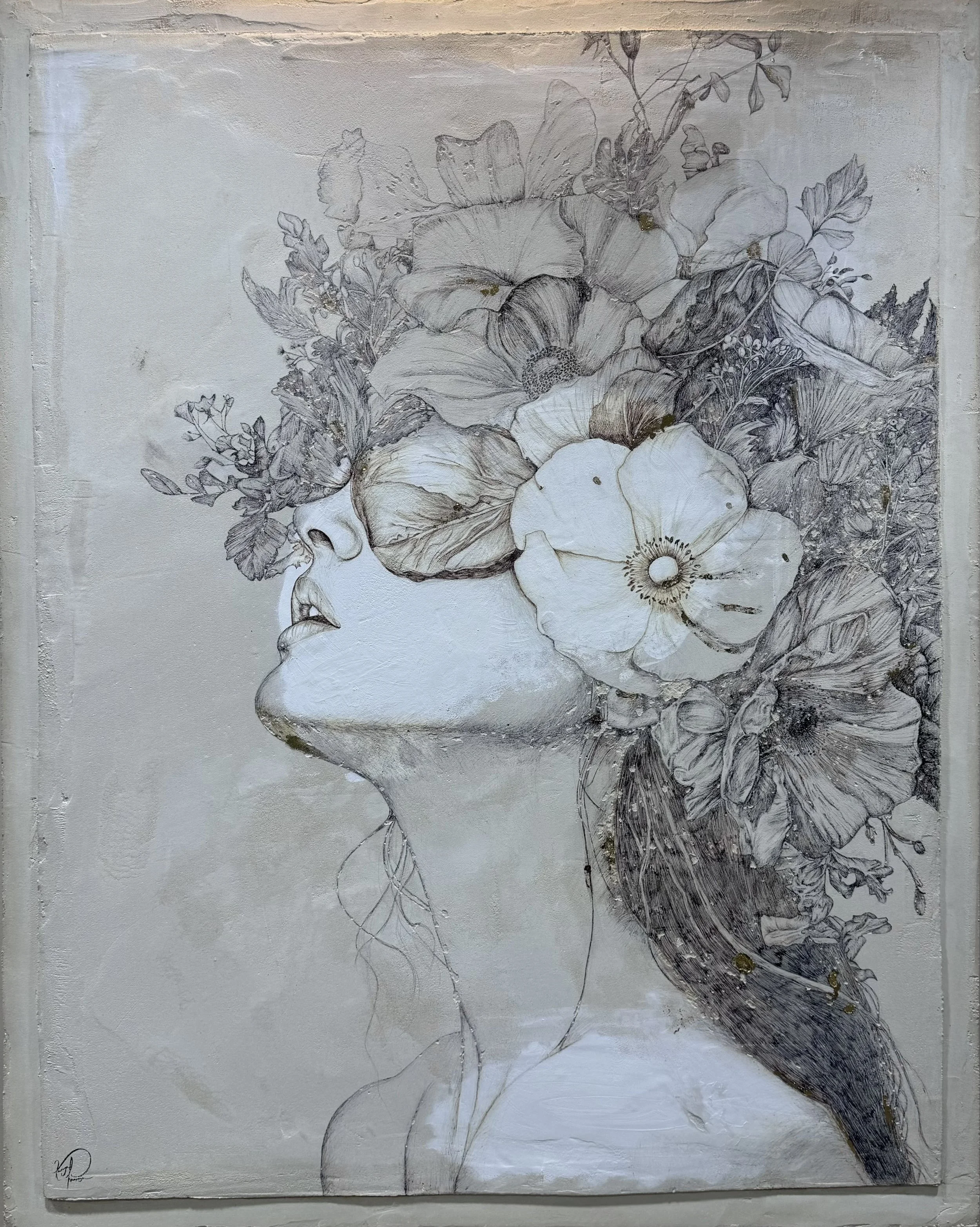 “Mind in Bloom” Biro and emulsion on cement. 120 × 150cm. 2024