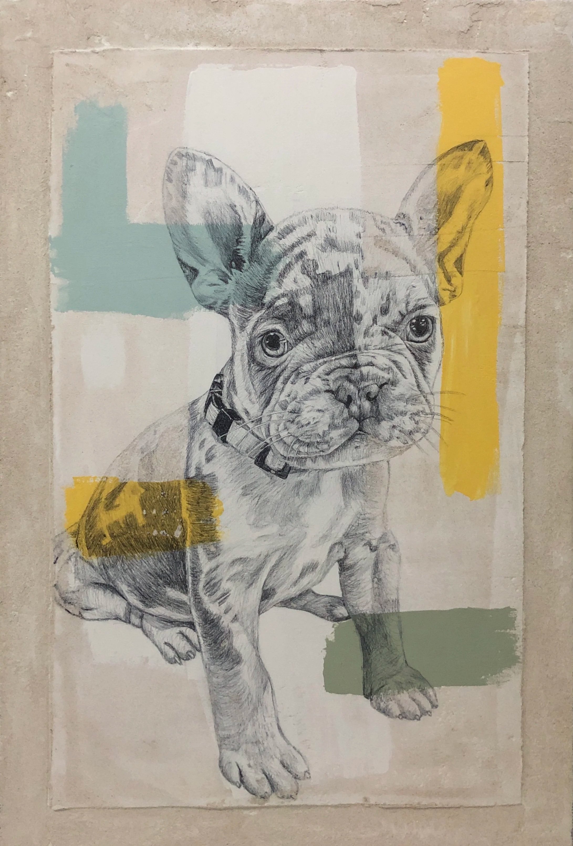 “Pup” Biro and emulsion on cement. 54 × 82cm. 2022