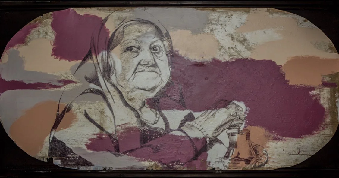 “La Familia” Biro and emulsion on cement. 120 × 150cm. 2022